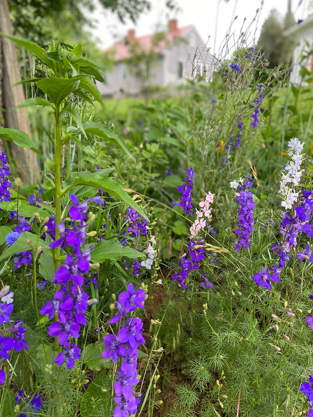 Showy Milkweed, Common Yarrow, Nodding Onion, Wild Bergamot, Great Blue Lobelia, Mist Flower, Blue False Indigo, Smooth Blue Aster, Anise (lavender) Hyssop, Zig Zag Spiderwort, Catchfly, Rocket Larkspur, Tall Mix Bachelors Button, Bachelor's Button, Sweet William, California BlueBells, California Corn Poppy Shirley Mix, Clarkia, Snapdragon, Love in a Mist Nigella, Cosmos, Zinnia.